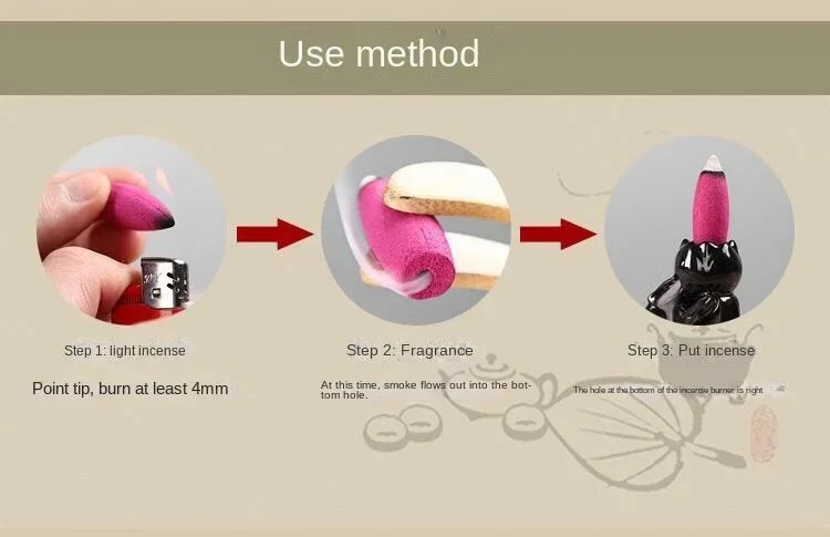 💡 Nota: Usar con conos de incienso de reflujo para mejor efecto de cascada